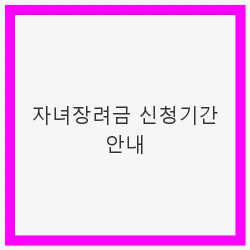 자녀장려금의 신청 기간은 매년 정해져 있습니다. 2025년의 경우, 신청 기간은 5월 1일부터 6월 2일까지입니다. 이 기간 안에 신청하지 못한 경우, 기한 후 신청이 가능하지만, 이 경우 지급액의 90%만 받을 수 있으므로 꼭 기한 내에 신청하는 것이 좋습니다.