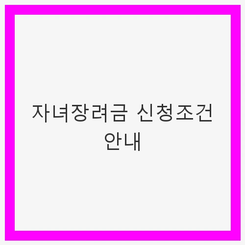 자녀장려금을 신청하기 위해서는 몇 가지 조건을 충족해야 하며, 이를 통해 가구의 경제적 상황을 파악하고 필요한 지원을 제공하려는 것입니다. 자녀를 둔 부모님들께서는 이를 통해 최대 300만 원까지 지원받을 수 있으니, 꼭 조건을 확인하고 신청하시길 바랍니다. 특히, 자녀가 1명일 경우에도 최소 50만 원이 지원되므로 신청할 이유가 충분합니다. 그럼 이제 구체적인 신청 조건과 절차에 대해 알아보겠습니다.