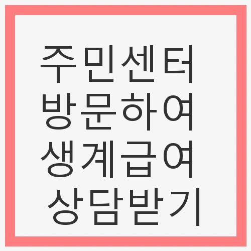 주민센터 방문은 단순한 행정 절차가 아니라, 위기 상황에서의 안전망으로 작용할 수 있습니다. 생계급여는 기본적인 생활비를 지원받을 수 있는 중요한 제도이며, 이를 통해 보다 안정된 삶을 누릴 수 있게 됩니다. 특히, 생계급여는 소득이 감소한 가구나 위기 상황에 처한 가구에 대한 긴급지원 제도로서, 필요한 도움을 즉시 받을 수 있는 방법입니다. 따라서, 주민센터를 통해 직접 상담을 받고 필요한 정보를 수집하는 것이 중요합니다.